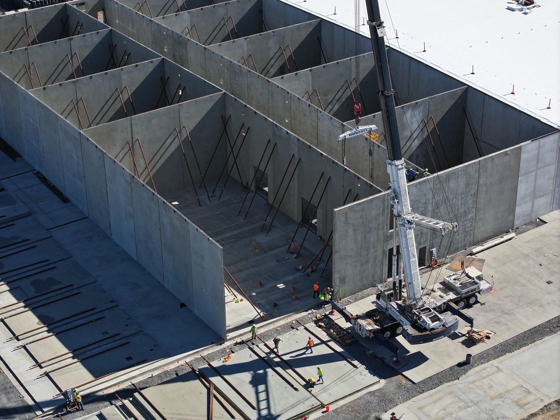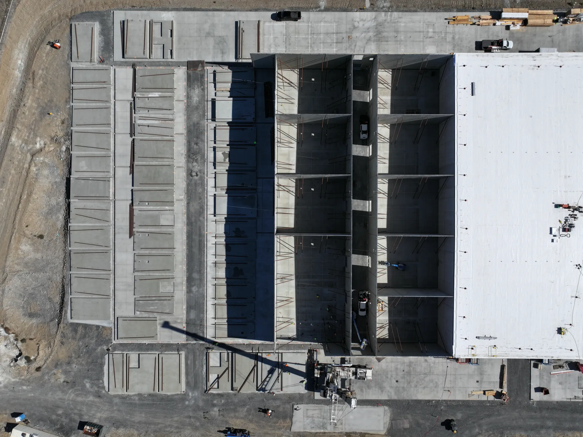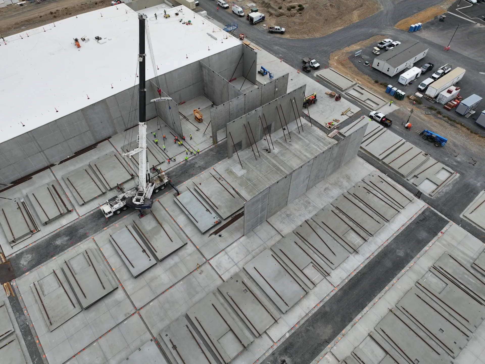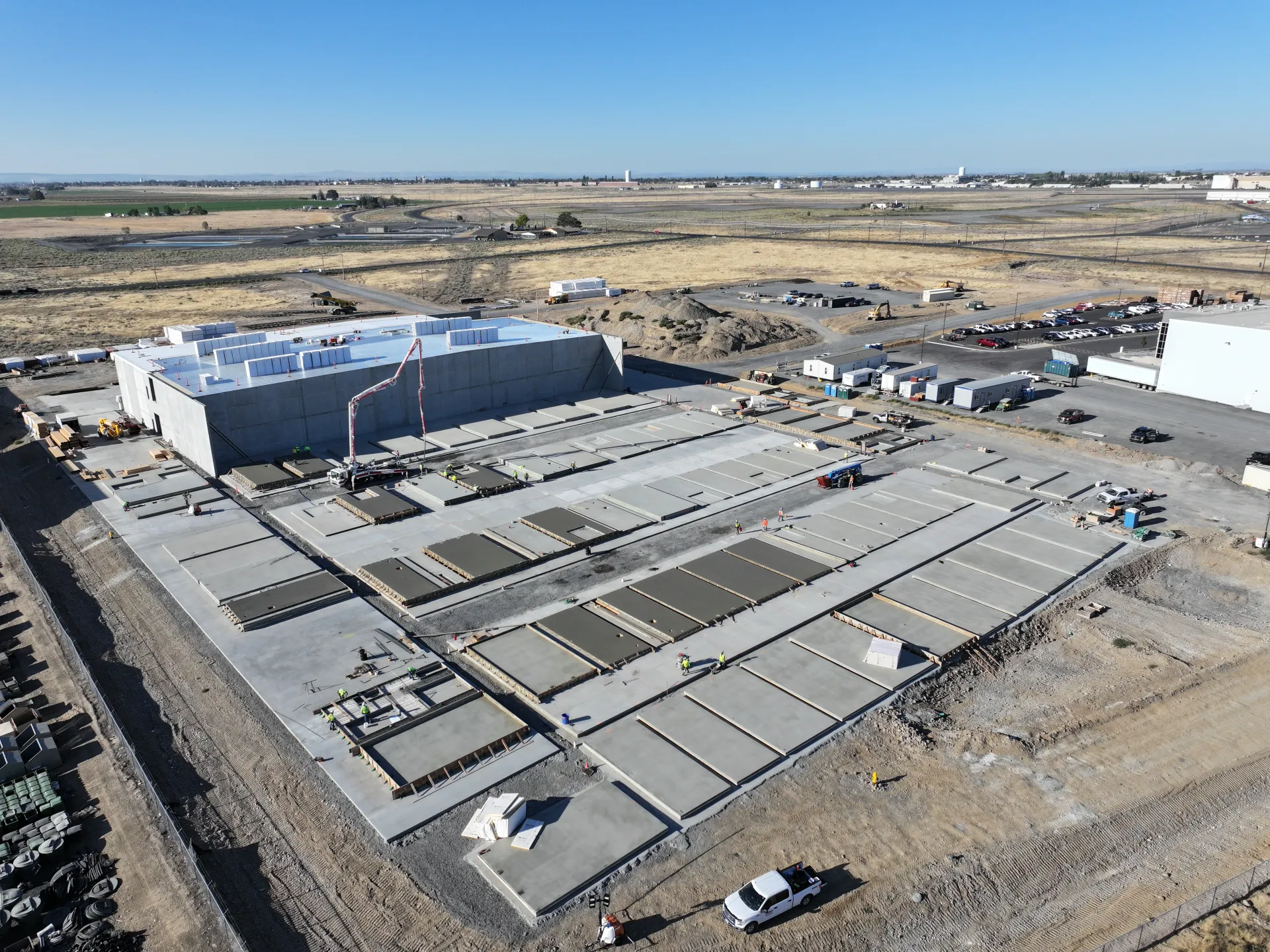 This project included a complete concrete package with footings, 255 tilt-up panels for 30 individual controlled atmosphere rooms (including 96 insulated panels), 110,000 SF of slab on grade, and 80,000 SF of paving.