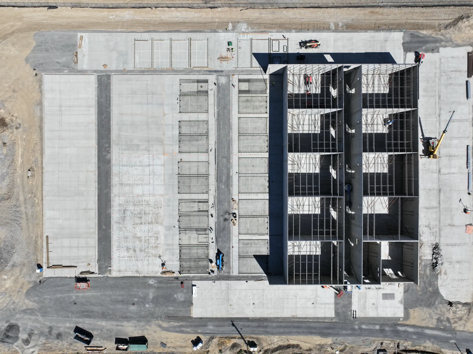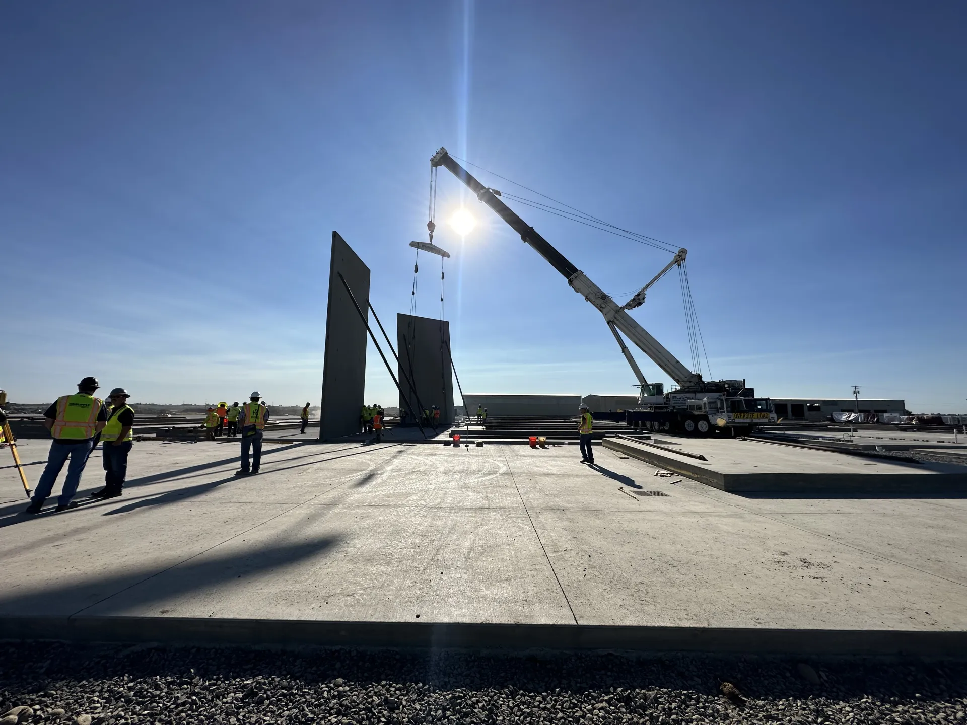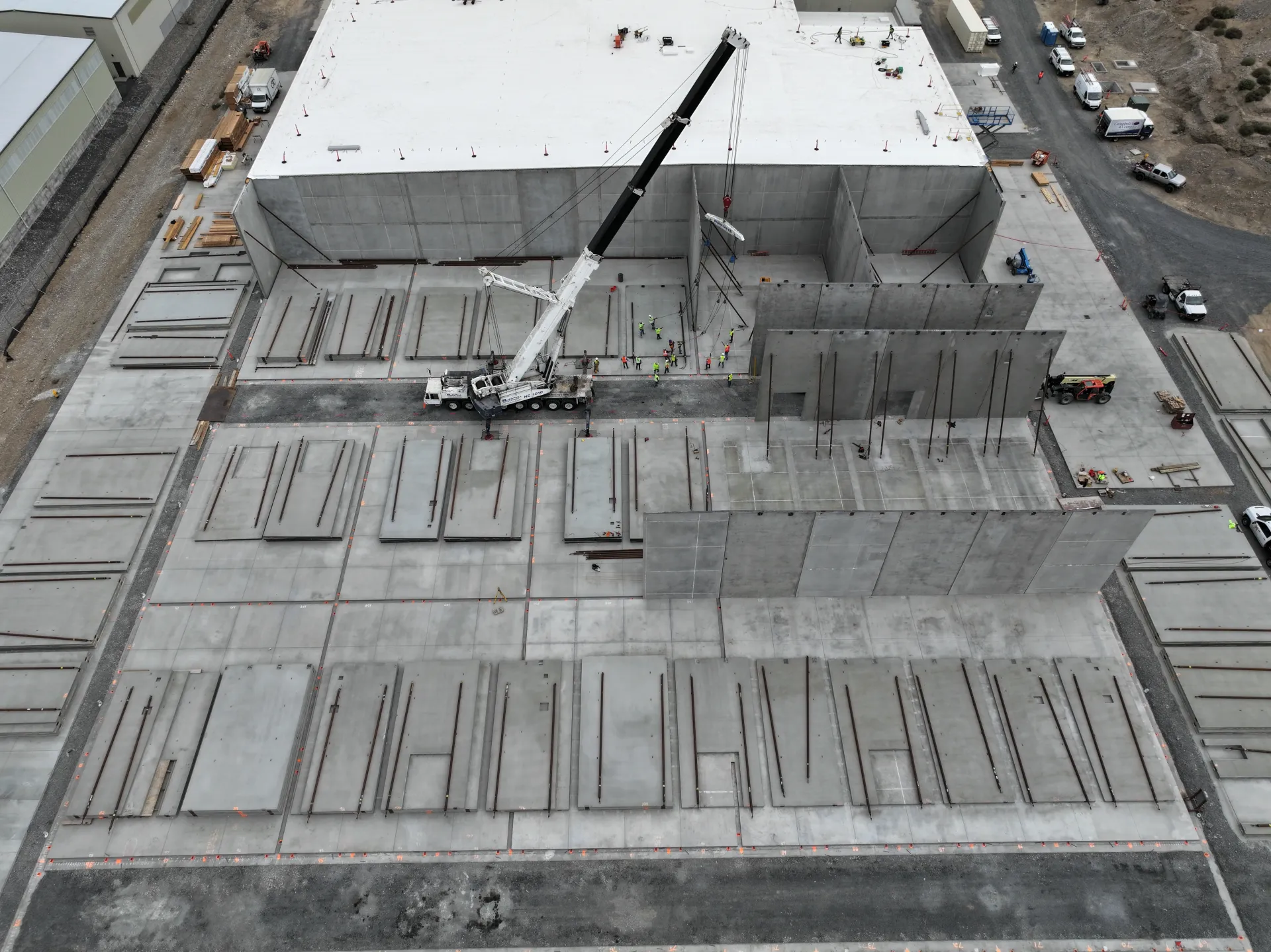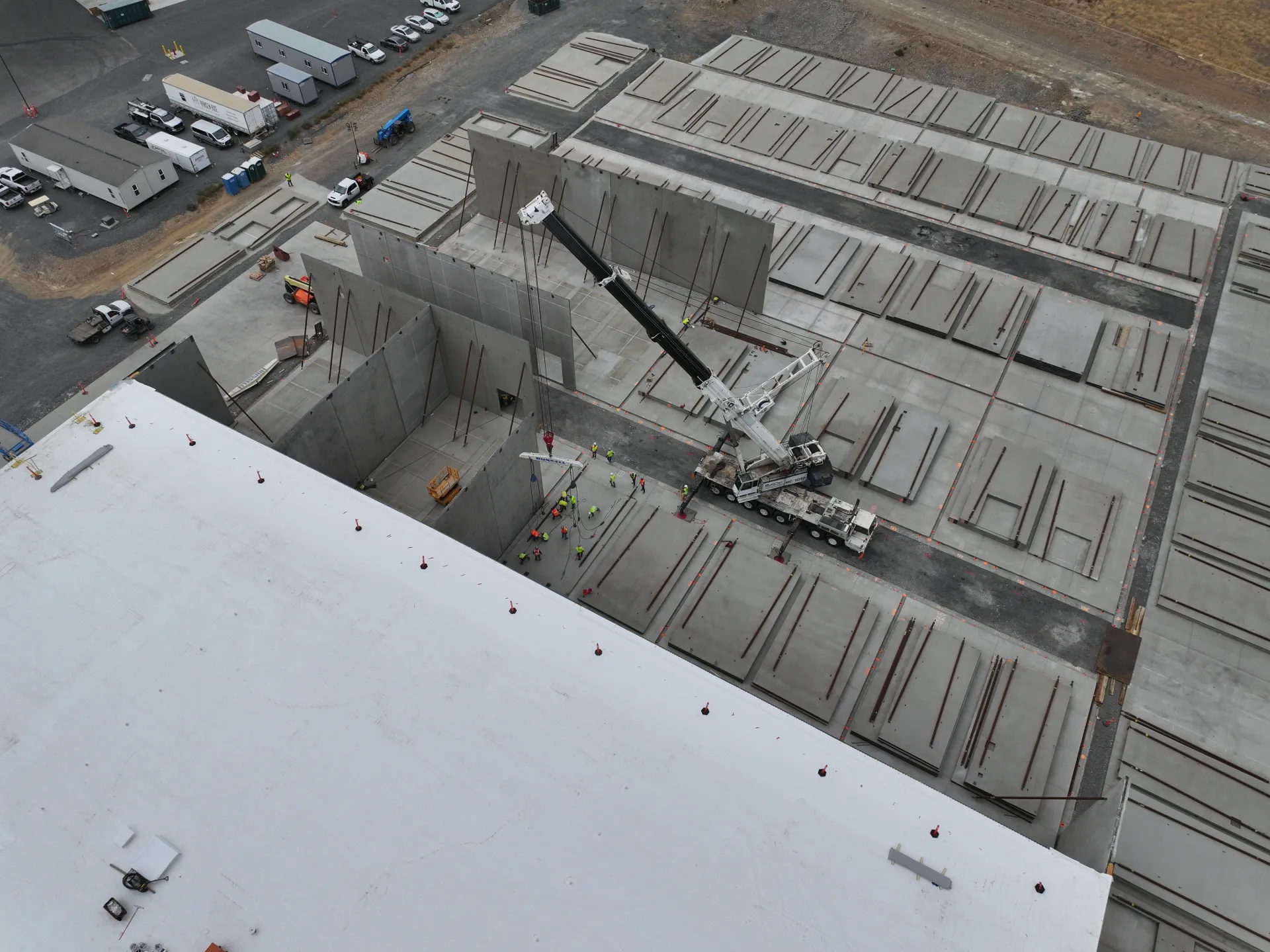 This project included a complete concrete package with footings, 255 tilt-up panels for 30 individual controlled atmosphere rooms (including 96 insulated panels), 110,000 SF of slab on grade, and 80,000 SF of paving.